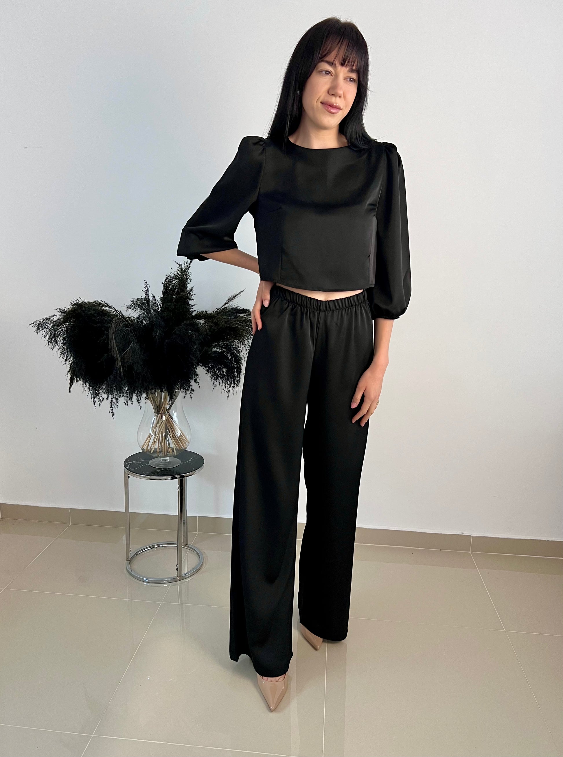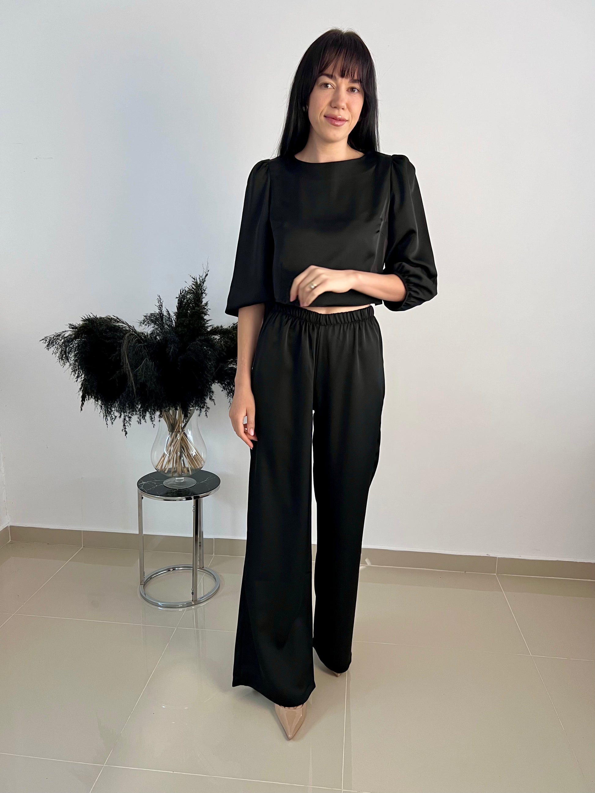 Set din două piese din satin – pantaloni și bluză